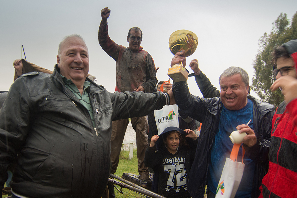 Bajó una intensa lluvia los allegados del stud El Miguelito celebraron con euforia, mientras que la Unión de Trabajadores de Turf y Afines, a través de Guillermo Taborda, Secretario de Organización e Interior, entregó obsequios del gremio tanto a su conductor.