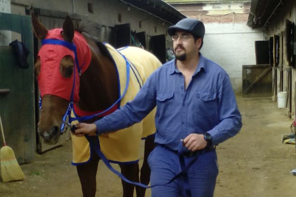 “Todo comenzó porque estaba desocupado y me enteré de esta formación a través de la oficina de empleo. No conocía nada sobre la actividad y quedé encantado. Encontré con los caballos una interesante profesión”, cuenta este muchacho que usa una boina negra, siendo una particularidad que lo caracteriza.