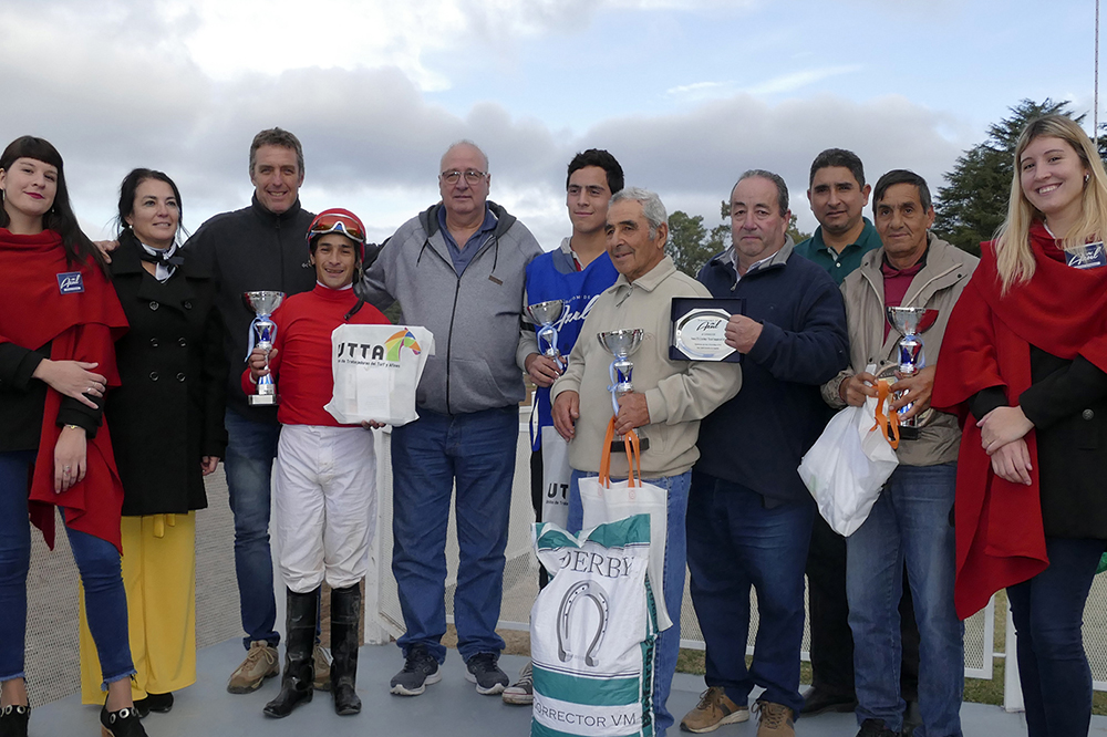 Una vez finalizada la competencia, Guillermo Taborda, dirigente UTTA y María Herrera, delegada de personal, entregaron trofeos al peón, jockey, entrenador y propietario de Decider. También estuvo presente Javier Fay, presidente de la Comisión Directiva del Hipódromo de Azul, en una tarde donde se homenajeó a un pilar fundamental de esta industria: los trabajadores y trabajadoras del turf.