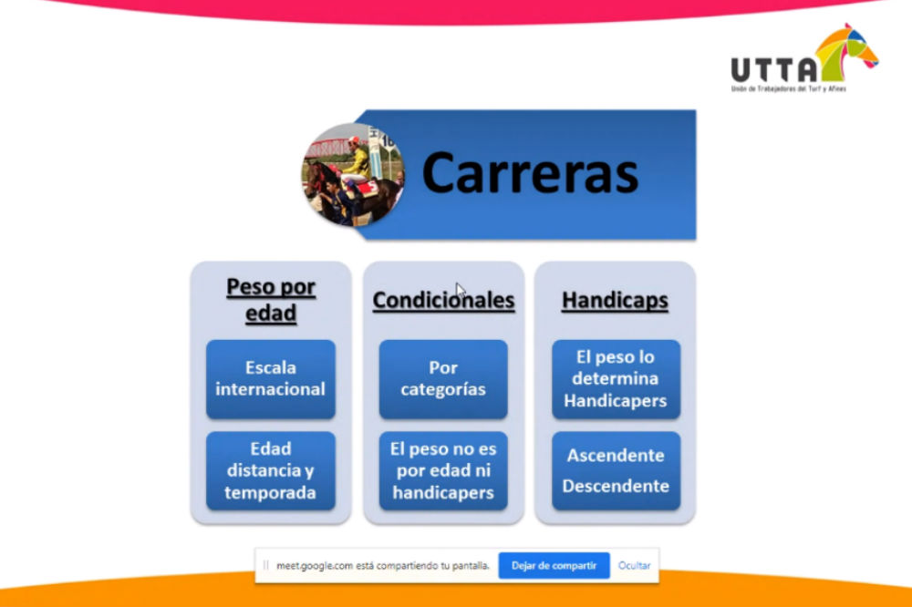 En una nueva convocatoria del curso formativo de “Funciones en una Secretaría de Carreras”, la cuarta de las aventuras semanales que invitan desde la UTTA a aprender e interactuar para la profesionalización de un área clave de los hipódromos, se focalizó en aspectos vitales del reglamento, las licencias y el trabajo de los jueces y handicappers.