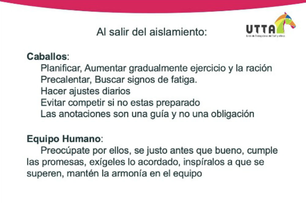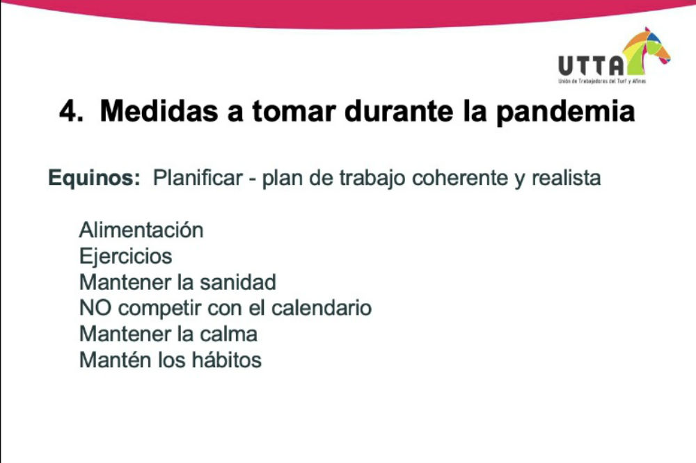 En su política habitual de enfocarse en la formación, pensando en aportar soluciones a la comunidad, promover el desarrollo y proteger a las personas ligadas a la actividad, la UTTA generó este jueves un debate en forma virtual sobre el “Trabajo en la Industria Hípica en tiempos de COVID-19”.