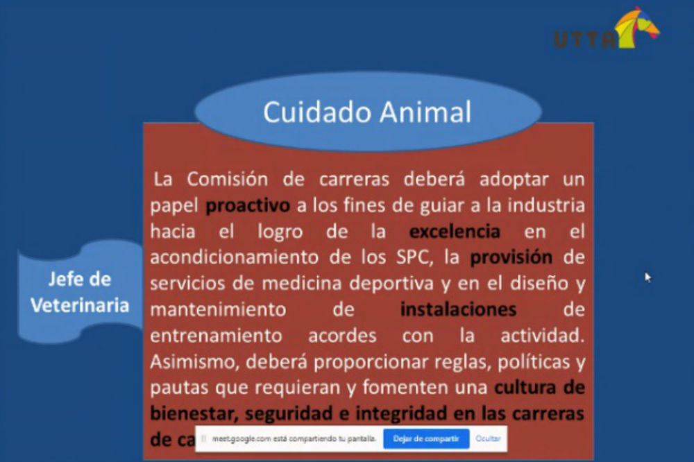 Este martes se completó el curso virtual de “Análisis y comprensión del Reglamento General de Carreras”, otra iniciativa de la UTTA para formarse dentro del turf en todo el país.
