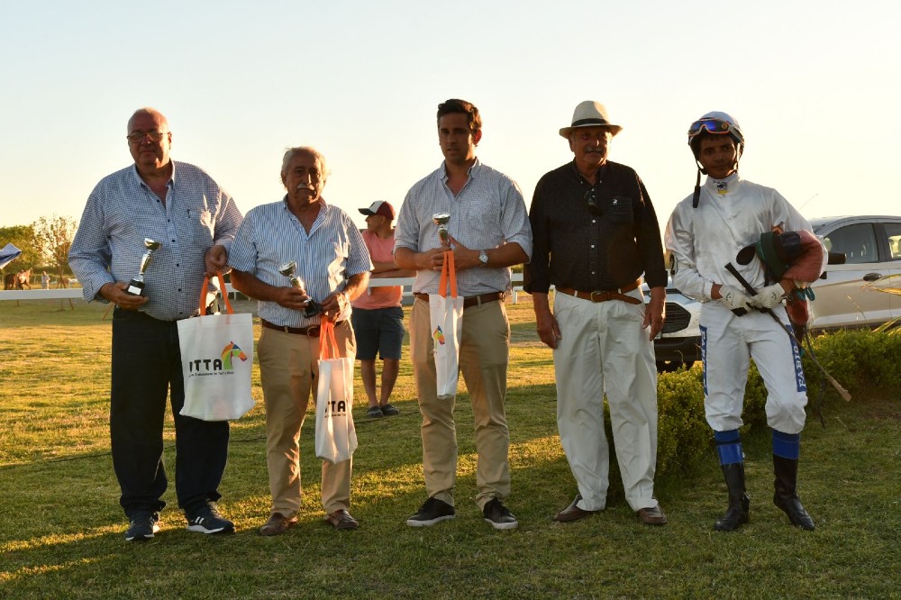 Al final de la carrera y en medio de la emoción de los ganadores y con la satisfacción de la apasionante jornada vivida, nuestro Secretario Administrativo y Gremial, Guillermo Taborda, hizo entrega de los respectivos trofeos al jockey y al cuidador del vencedor, acompañado de las autoridades locales.