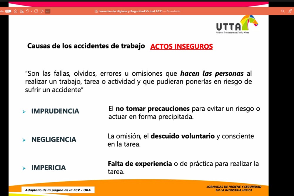 Se desarrolló el jueves 9 de diciembre, en forma virtual y gratuita para un caudal de inscriptos que ya trasciende las fronteras, un nuevo curso de capacitación de la UTTA para los trabajadores de la industria hípica. La “Jornada de higiene y seguridad laboral”, siempre pensando en el progreso personal y profesional de los actores que rodean a los caballos deportivos, marcó el final del ciclo 2021, que contó con las más diversas enseñanzas continuando la prédica de nuestra organización.