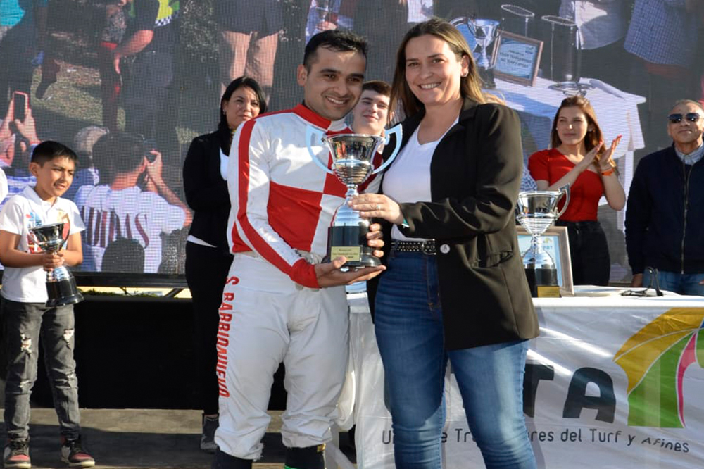 En representación de la organización estuvieron nuestro Secretario Tesorero, Luis Leguiza, y Stefanía Felice, Vocal Titular, quienes en la ceremonia de premios confirmado el marcador entregaron los trofeos al jockey, Sergio Barrionuevo, al entrenador Julio Seme y a los propietarios, Camila, Sebastián y José Luis García, titulares de la caballeriza Seba y Cami. Una familia del riñón de la hípica tucumana tan cercana a los sentimientos de la industria.