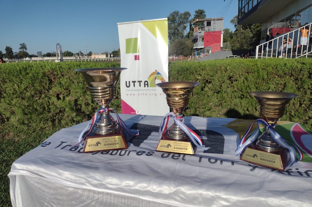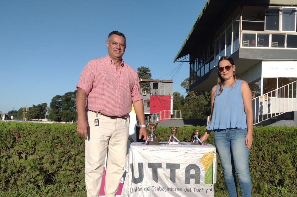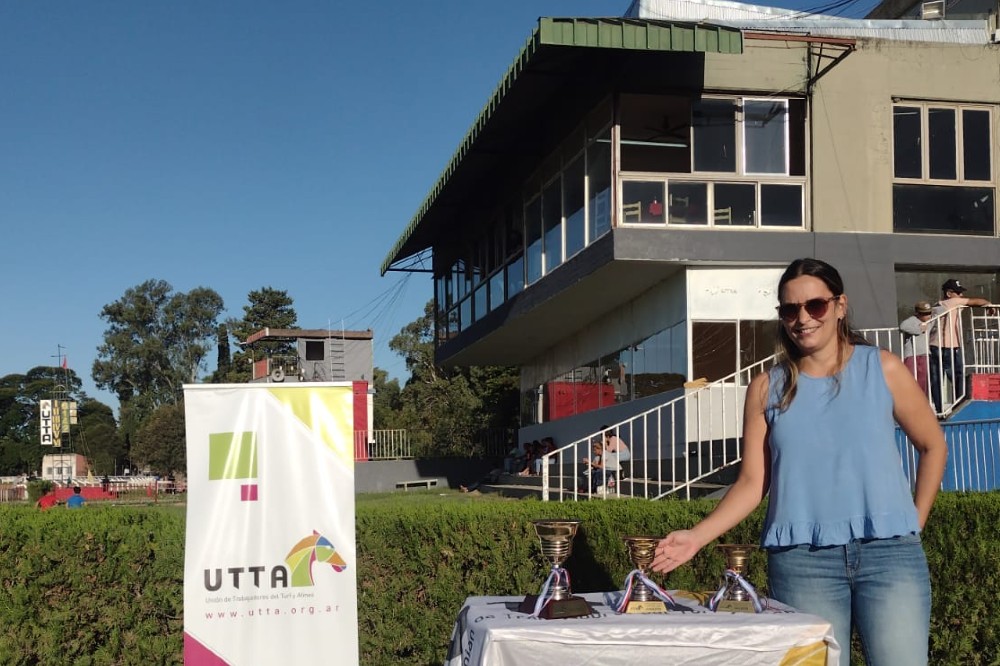 Stefanía Felice, Vocal Titular de UTTA, y Patricio De Iriondo, Secretario Pro Tesorero, entregaron los premios luego de confirmarse el éxito por cuatro cuerpos sobre Laurent Perrier, en un lote de cuatro ejemplares cuyo marcador se completó con Morgante en el tercer lugar a otros cuatro cuerpos, y Global Berry en el fondo del grupo, a cinco más.