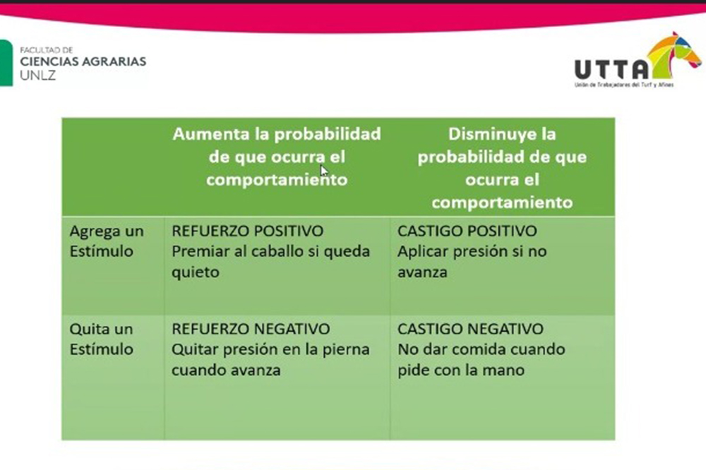 El curso virtual y gratuito “Etología aplicada al manejo y entrenamiento del caballo” expuesto por la ingeniera zootecnista María Florencia Godoy, estuvo principalmente enfocado, como es tradicional en las capacitaciones de la UTTA, en el beneficio profesional y en la seguridad de nuestros afiliados y la de los animales.