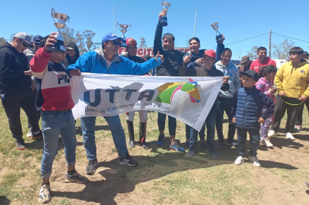El ex jockey y vigente delegado de personal José Ricardo Méndez entregó las copas al equipo liderado por el entrenador Matías Fernández. Todos celebraron a pura algarabía con una bandera de la UTTA, levantando los premios con ambas manos mientras recibían una ovación del público. Y, finalmente, sumaron a amigos, familiares y otros componentes del stud a una foto con casi 40 personas. Uno de los hitos de la fiesta neuquina, que incluyó al Gran Premio Carlos Pellegrini (1600m) obtenido por Fango Negro, en medio de tribunas colmadas.