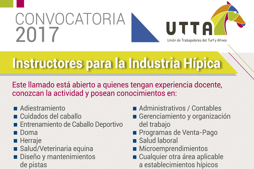 La capacitación en oficios ecuestres es fundamental para profesionalizar cada vez más la actividad. Es por ello que desde UTTA lanzamos una convocatoria para Instructores de oficios en la Industria Hípica.
