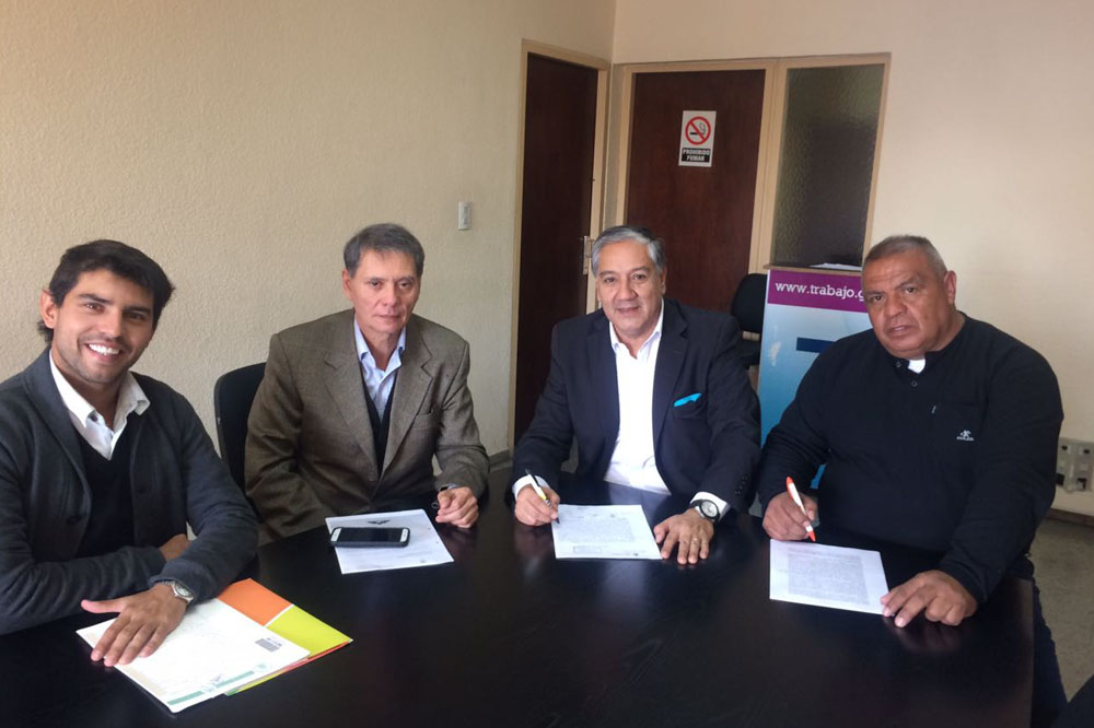En la rúbrica, que se realizó en el Ministerio de Trabajo de Mendoza, participaron Juan Carlos Pérez, Secretario Administrativo y Gremial; Rodolfo Guayama, Secretario de Vivienda, Miguel Pérez, delegado de personal de los trabajadores jornalizados y Armando Montenegro, delegado de personal de los trabajadores mensualizados.