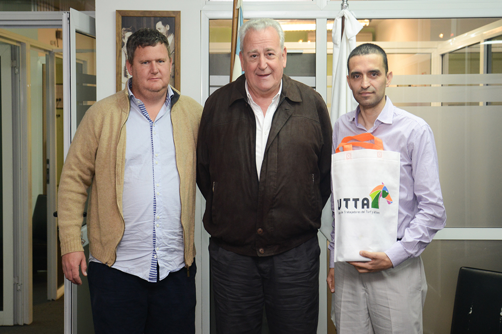 El martes el Secretario Adjunto de la UTTA, Elio Demartini, recibió para acordar una nueva escala salarial, tanto a las autoridades de la Federación Argentina de Pato, Pablo Segovia, Gerente Institucional y Walter Ávila, Secretario; como al representante de Haras Don Florentino, Alejandro Oviedo. También estuvo presente para la firma, el Vocal de la UTTA, Santiago Britos.
